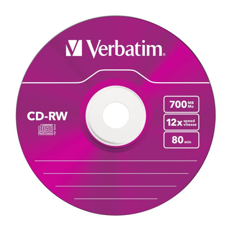 1x5 Verbatim CD-RW 80 / 700MB 10x Speed, Colour, Slim