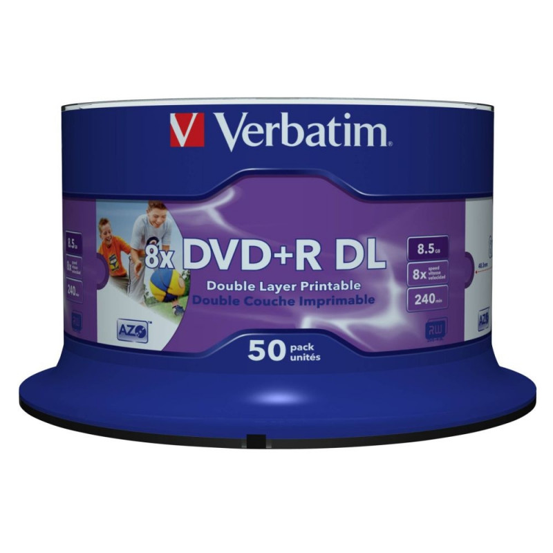 50x Verbatim DVD+R Double Layer Wide Inkjet Printable 8x