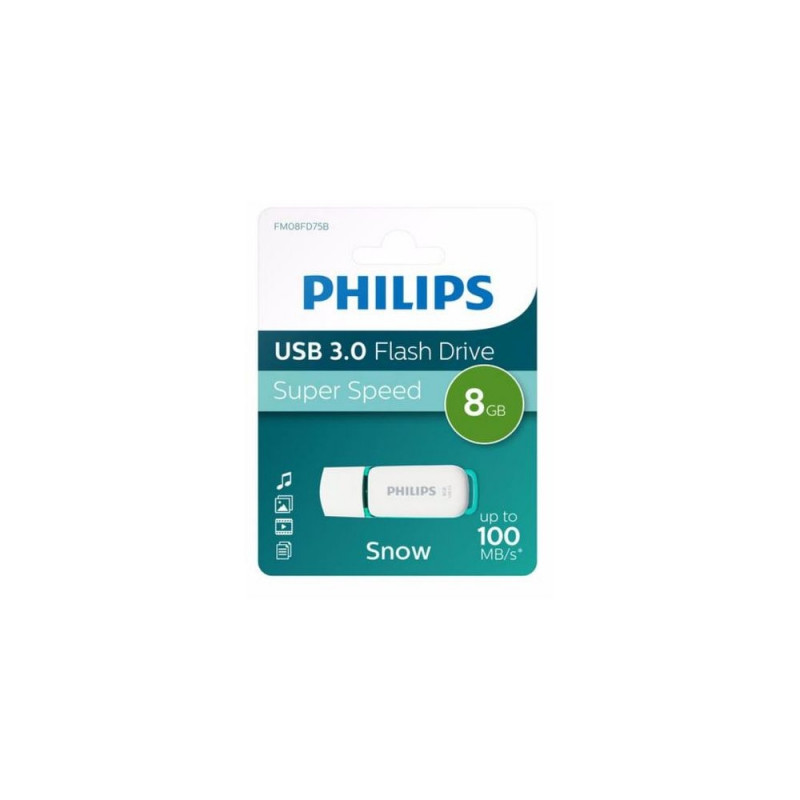 <br />Philips FM08FD75B. Capacity: 8 GB, Device interface: USB Type-A, USB version: 3.2 Gen 1 (3.1 Gen 1). Form factor: Cap. Weight: 8 g. Product colour: Turquoise, WhiteWarning: Last items in stock!