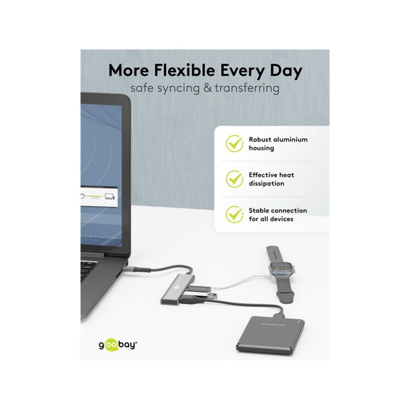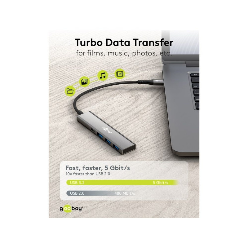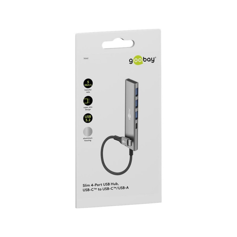 Goobay Slim 4-Port USB Hub, USB-C™ to USB-C™/USB-A, 5 Gbit/s