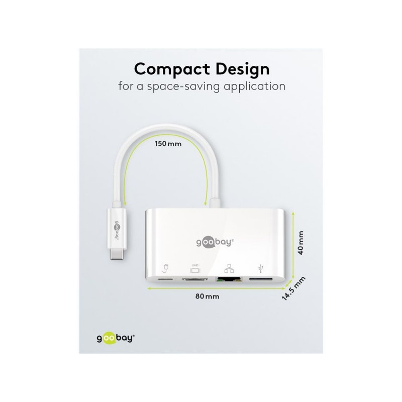 Goobay USB-C™ Multiport Adapter to HDMI™ and Ethernet, PD, White