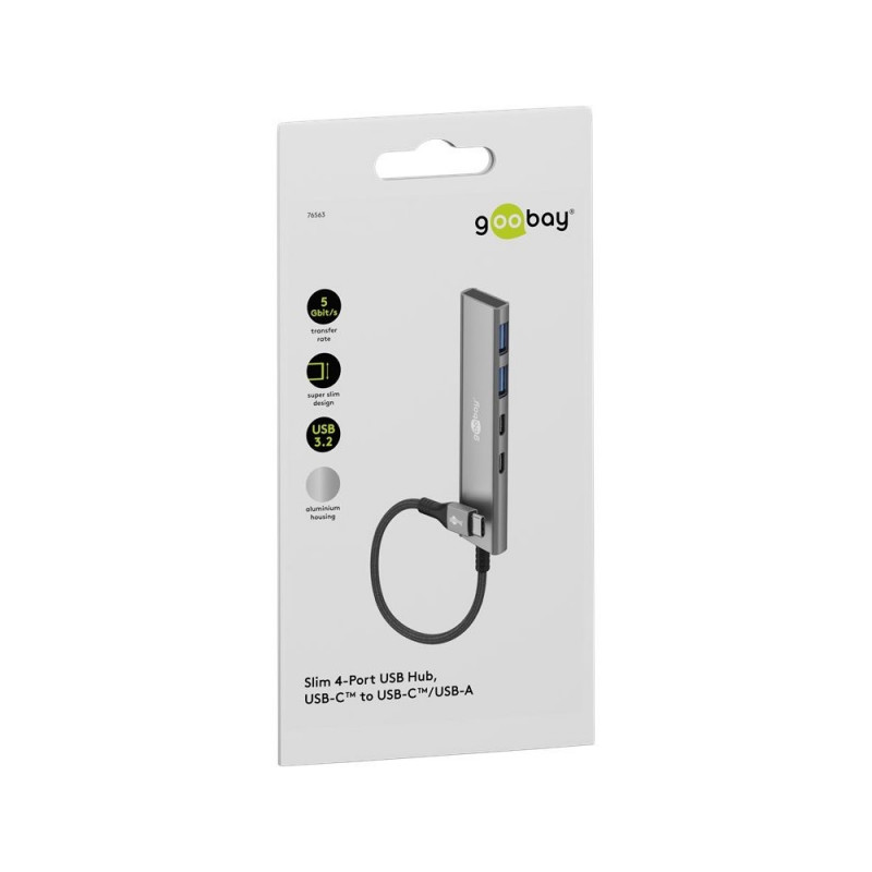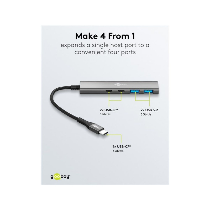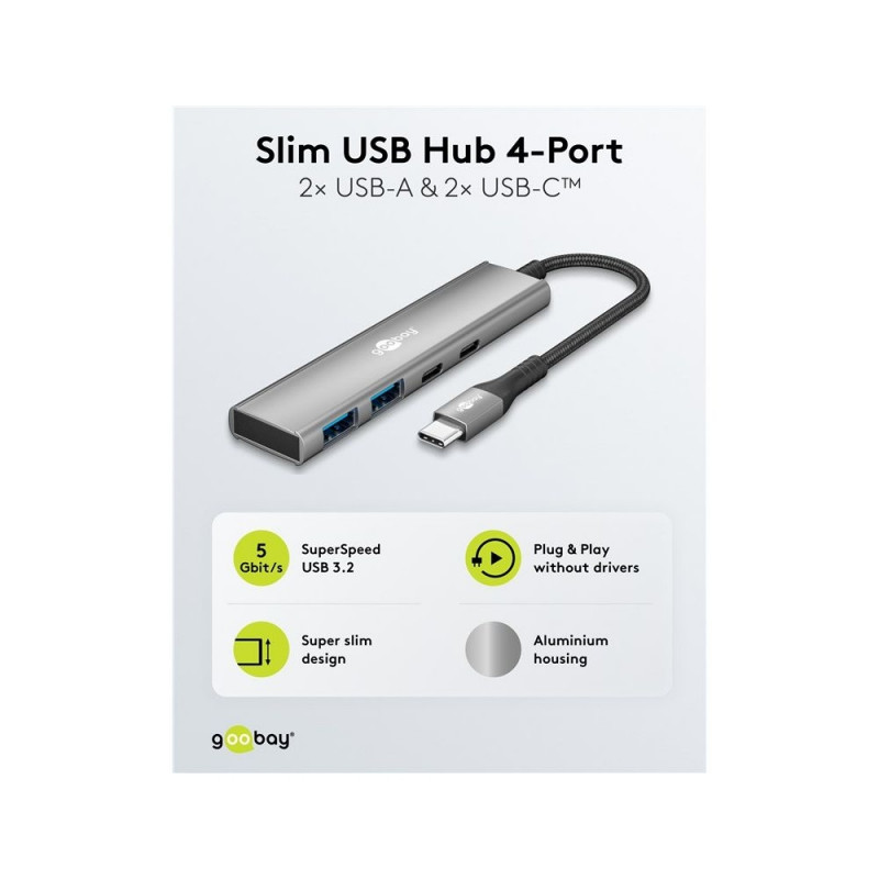 Goobay Slim 4-Port USB Hub, USB-C™ to USB-C™/USB-A, 5 Gbit/s