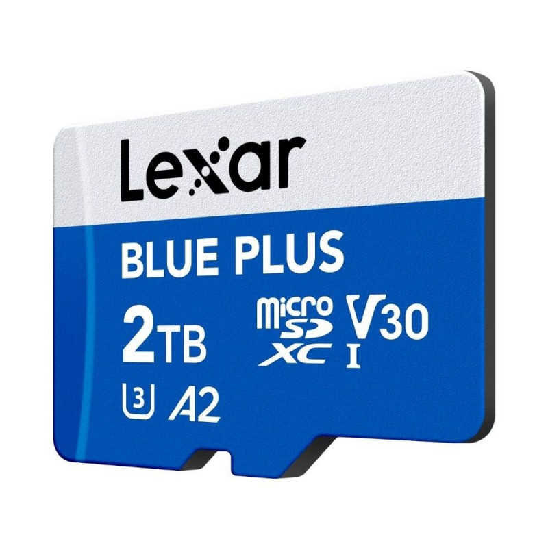 | Summary | Lexar BLUE PLUS. Capacity: 2 TB, Flash card type: MicroSDXC, Internal memory type: UHS-I, Read speed: 170 MB/s, UHS Speed Class: Class 3 (U3), Video Speed Class: V30. Protection features: Drop proof, Magnet proof, Shock resistant, Temperature proof, Vibra |