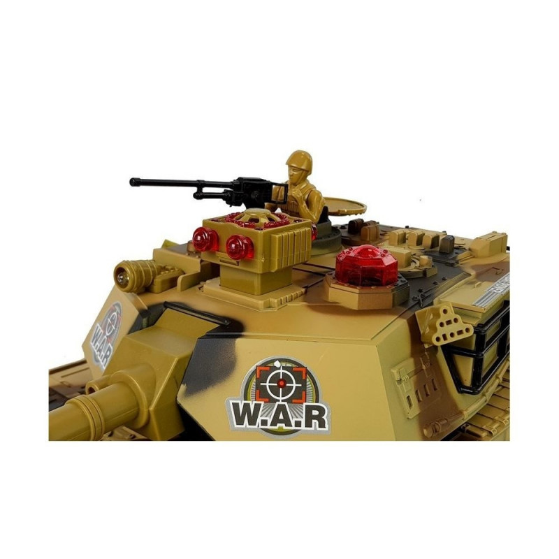 Czołg ma kolorystykę wojenną, żółto- czarną, gąsienicowe opony imitują jazdę prawdziwego czołgu. Podczas wystrzelania z działa, zachowuje się jak prawdziwy czołg i widoczny jest odrzut pojazdu do tyłu. Na dachu znajduje się właz, w którym można umieścić żołnierza i strzelać do wrogów. Świecące diody i efekty dźwiękowe imitujące jazdę i odgłos silnika sprawią, że będzie widoczny z daleka, aTwoim zadaniem będzie unikać ostrzału i zestrzelić swojego wroga.