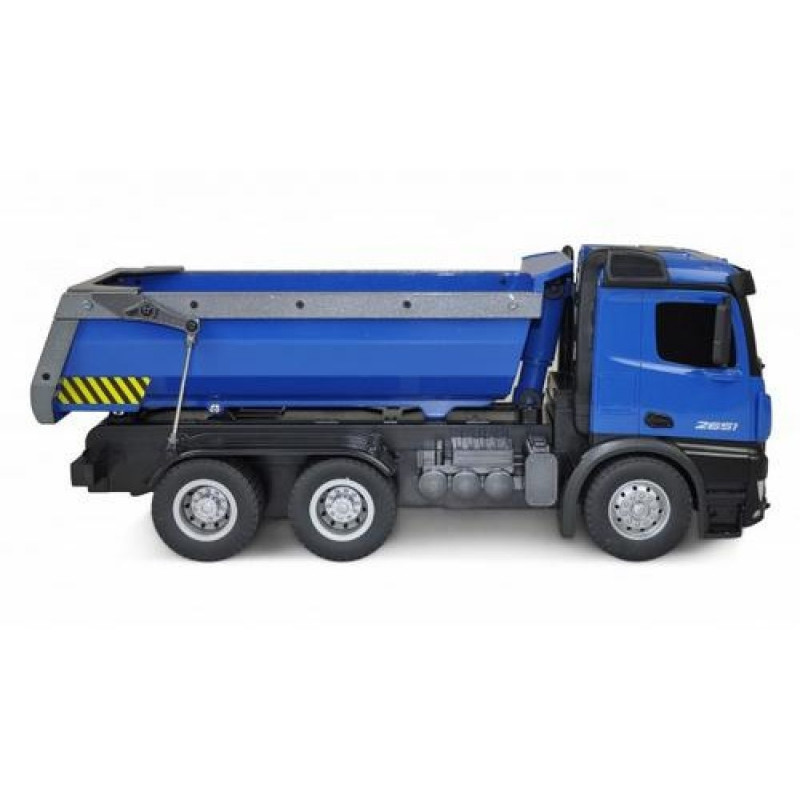 Arocs is the name of the famous truck series of the Mercedes-Benz brand of Daimler AG. The Arocs construction site vehicles were first introduced in 2013 and have since been found on many construction sites worldwide. They are characterised by high performance, reliability and robustness. With this licensed model, almost all functions can be controlled as with its big brother, making the hearts of scaler fans beat faster. The model has a 4WD drive and an encapsulated gearbox. It is therefore protected against splash water and is also suitable for off-road use. The body and the paint of this high-quality model correspond to the original, which makes this model special in design and presentation. The model is delivered RTR (ready to run) and the scope of delivery includes everything required for operation. (except the batteries for the transmitter).Amewi Mercedes Arocs License Dump Truck. Product type: Dump truck, Scale: 1:14, Engine type: Electric engine. Battery technology: Nickel-Metal Hydride (NiMH), Battery capacity: 400 mAh. Weight: 3.6 kg