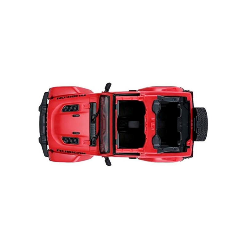 Zdalnie sterowany samochód Jeep Wrangler Rubicon w kolorze czerwonym to autentyczna replika w skali 1:14. Samochód za pomocą pilota porusza się do przodu, do tyłu, skręca oraz hamuje. Ze względu na swój terenowy charakter może być stosowany zarówno wewnątrz jak i na zewnątrz. Światła w pojeździe uruchamiają się kiedy jest uruchomiony oraz kiedy jedzie. Drzwi pojazdu są otwierane ręcznie, wnętrze i podwozie pojazdu są zaprojektowane bardzo dokładnie z dbałością o zgodność z oryginalnym pojazdem. Zdalnie sterowany Jeep jest kierowany za pomocą pilota działającego radiowo, osiąga prędkość 7 kilometrów na godzinę. Pilot ma zasięg około kilkunastu metrów i w przeciwieństwie od pilotów na podczerwień może być bez żadnych problemów używany na zewnątrz przy pełnym słońcu.