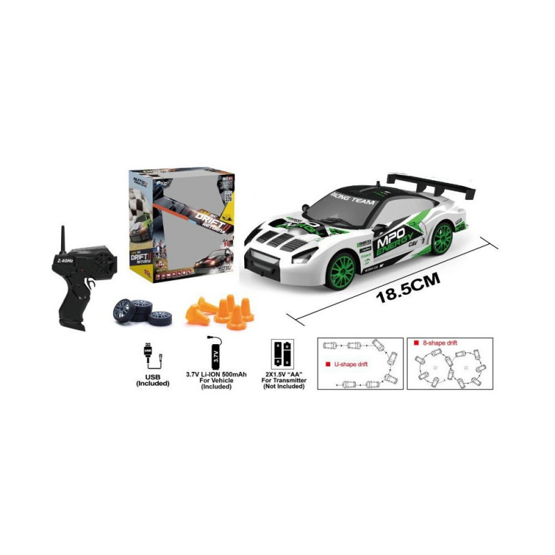 Auto Sportowe Zdalnie Sterowane Wymienne Koła Biało- Zielone