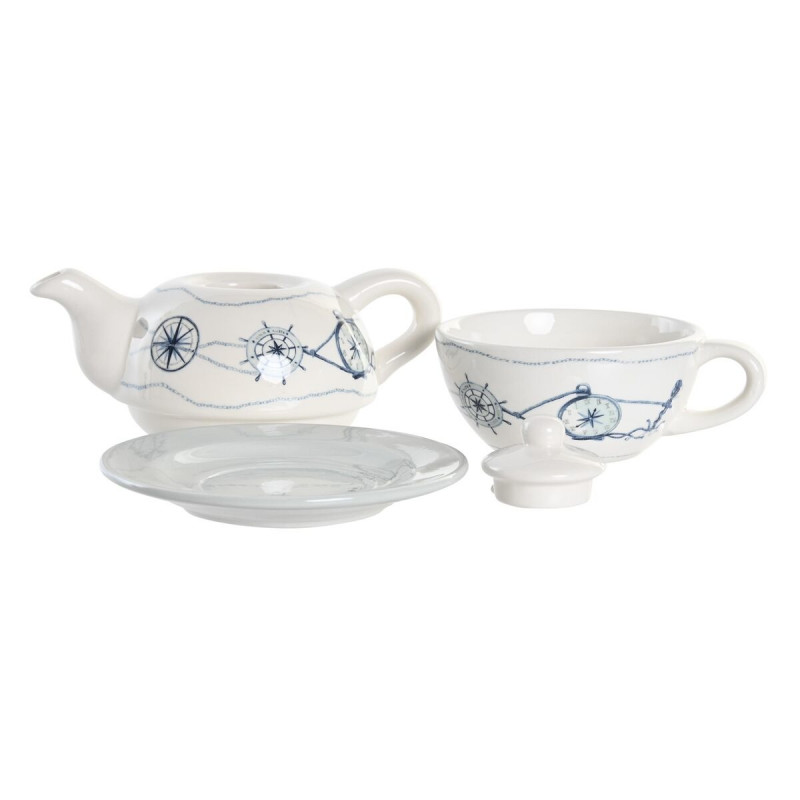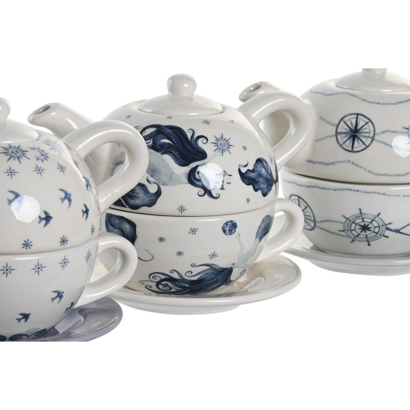 Tea Set DKD Home Decor Blue White 750 ml Dolomite (3 Units)