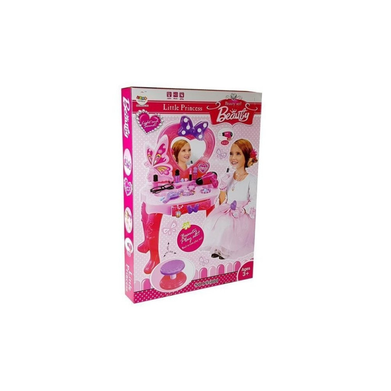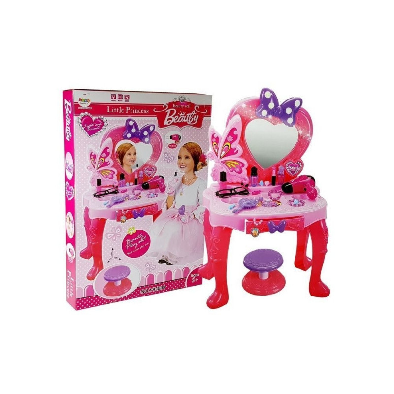 Zestaw dla małej modnisi ? Z tym uroczym zestawem Twoja mała księżniczka może poczuć się wyjątkowo! Toaletka z lusterkiem, akcesoriami i efektami dźwiękowymi to doskonały sposób na rozwój wyobraźni i zabawę w stylu kosmetyczki.