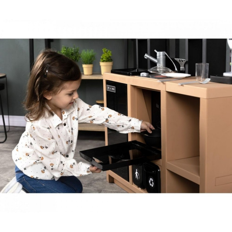 - Wielofunkcyjna kuchnia w industrialnym stylu - jej nowoczesny design doskonale pasuje do nowoczesnych wnętrz, pozwala na wierne odwzorowanie czynności, które dzieci obserwują w życiu codziennym.