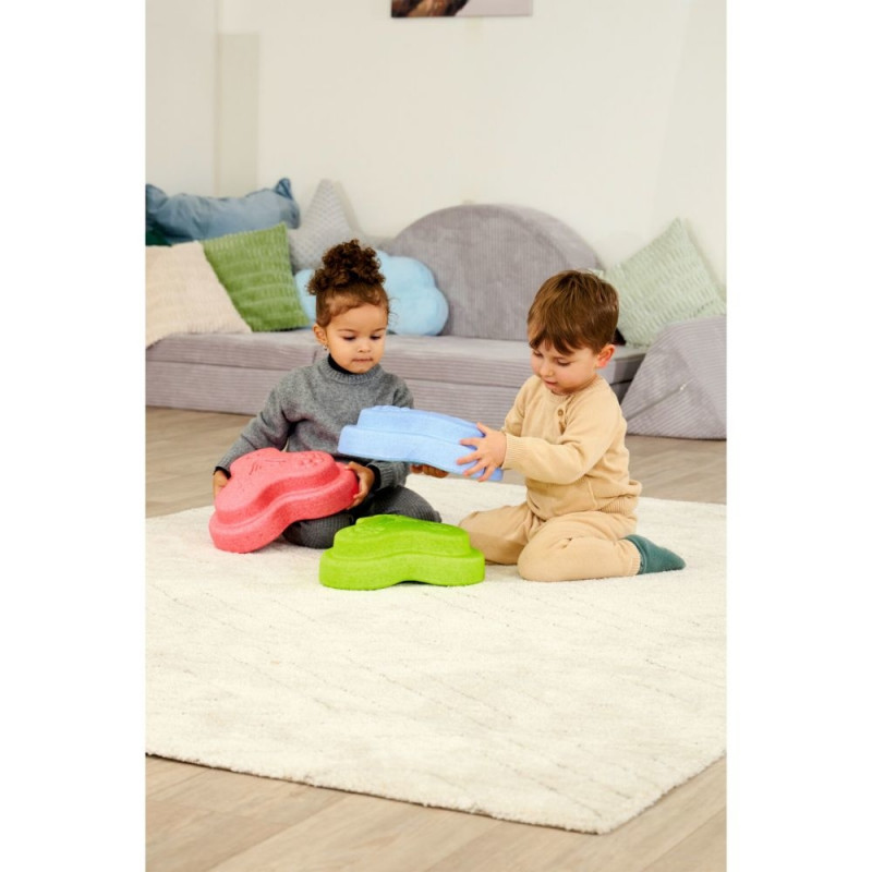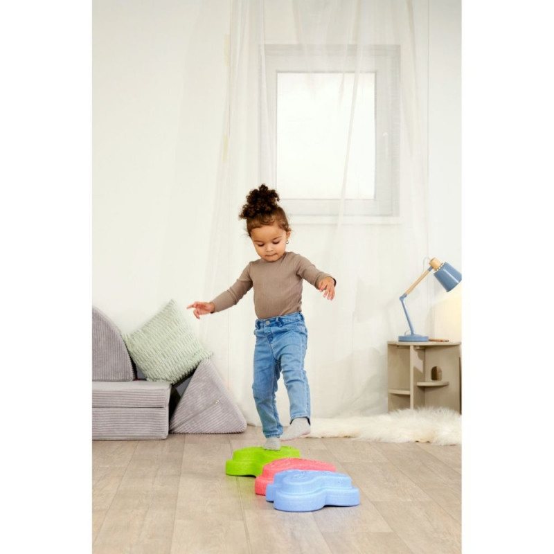 With these colorful play bricks, you can create a diverse movement landscape for children twelve months and older. The five bricks invite you to practice balance and body control in a playful way. Different surface textures stimulate the senses and provide exciting experiences while touching and balancing.