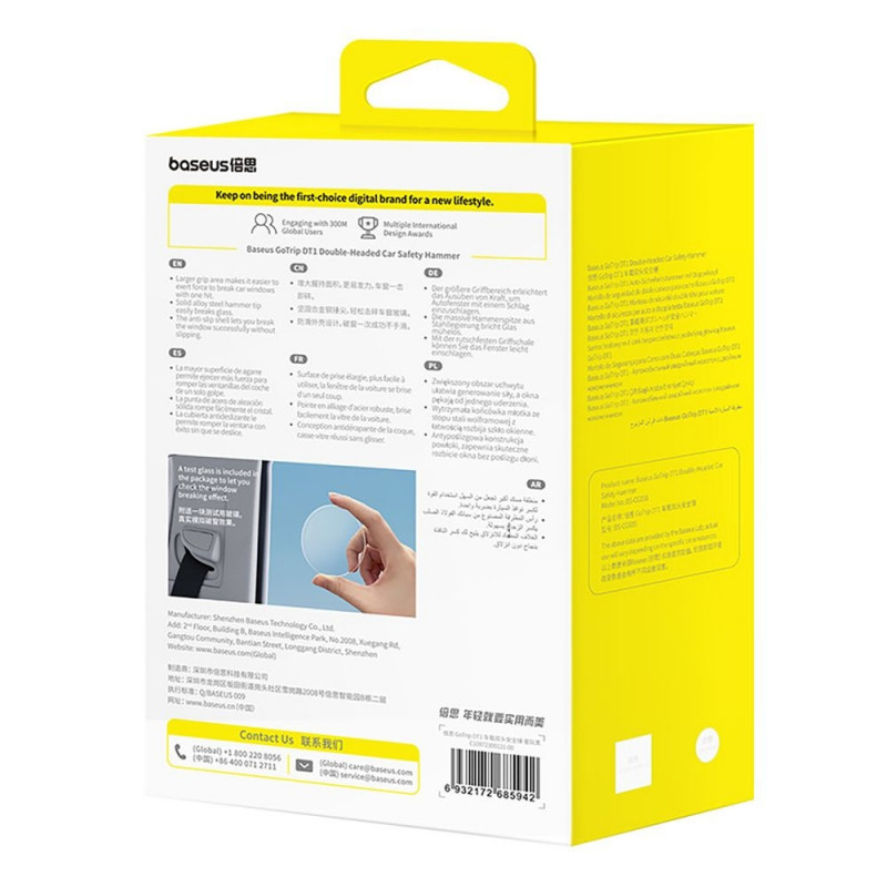 Baseus GoTrip DT1 is a compact and extremely effective emergency tool that can save lives in critical situations. Equipped with a double alloy steel head and a spring-loaded impact mechanism, it allows you to quickly break a window - even under water. Thanks to the retractable knife hidden in the housing, you can easily cut seat belts in one move. The ergonomic, non-slip handle makes the hammer easy to use with one hand - even by women or the elderly. Its compact size and silicone pendant allow you to store it in the glove compartment, armrest or hang it on your bag. The set also includes a test glass to check the effectiveness of the tool yourself. This is a practical and reliable piece of equipment for every car - ready for action when every second counts.