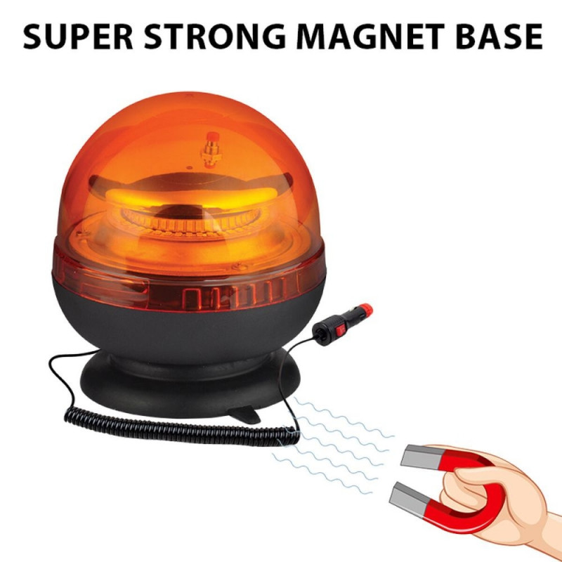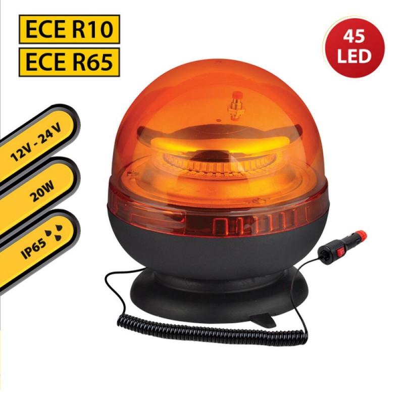 The Stak beacon is an efficient and robust solution for visual signaling in industrial, agricultural, or safety environments, featuring a 20 W high-intensity LED light that provides optimal 360° visibility. Made from high-strength plastic with an ABS base and transparent polycarbonate diffuser, it ensures durability against impacts and a long service life of up to 30,000 hours. This model is E-Mark approved according to ECE R10 and R65, certifying its reliability and quality for professional use on vehicles and technical machinery. It includes two strobe flashing modes, specifically designed to alert in emergencies or when working in low-visibility areas. Thanks to its IP65 protection, the beacon effectively withstands rain, snow, and fog, ensuring stable performance even in harsh environments. The dual 12/24 V power system allows versatile integration across a wide range of vehicles, and the simple cigarette lighter connector makes installation and immediate use easy, with no need for additional adapters. Its modern design combines functionality and high luminous efficiency, meeting safety and signaling needs for forklifts, agricultural machinery, and technical vehicles. In summary, the Stak LED beacon is designed to deliver powerful signaling, durability, and ease of use in professional settings where visibility and safety are top priorities.