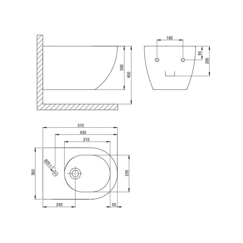 PEONIA BIDET. NERO. WALL MOUNTED