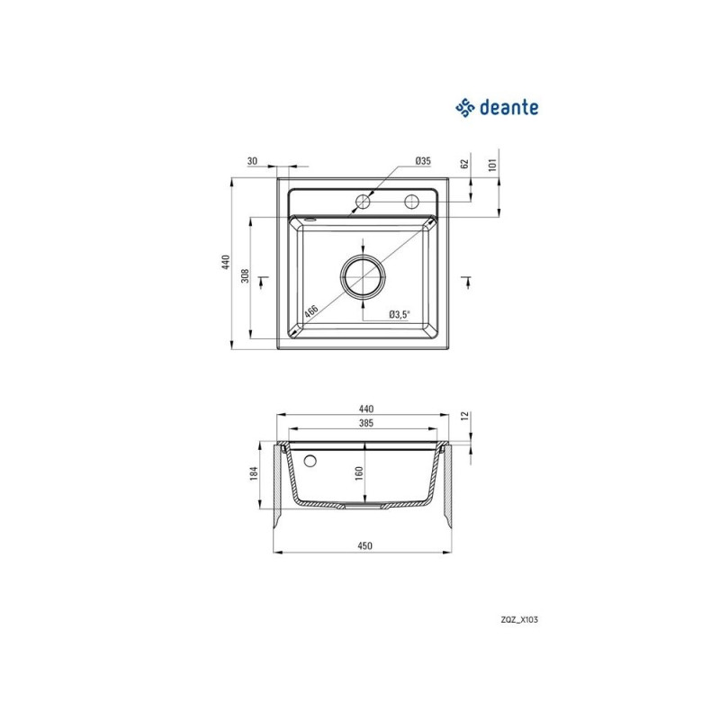ZORBA GRAN SINK 44X44X18 ZQZ_A103 WHT