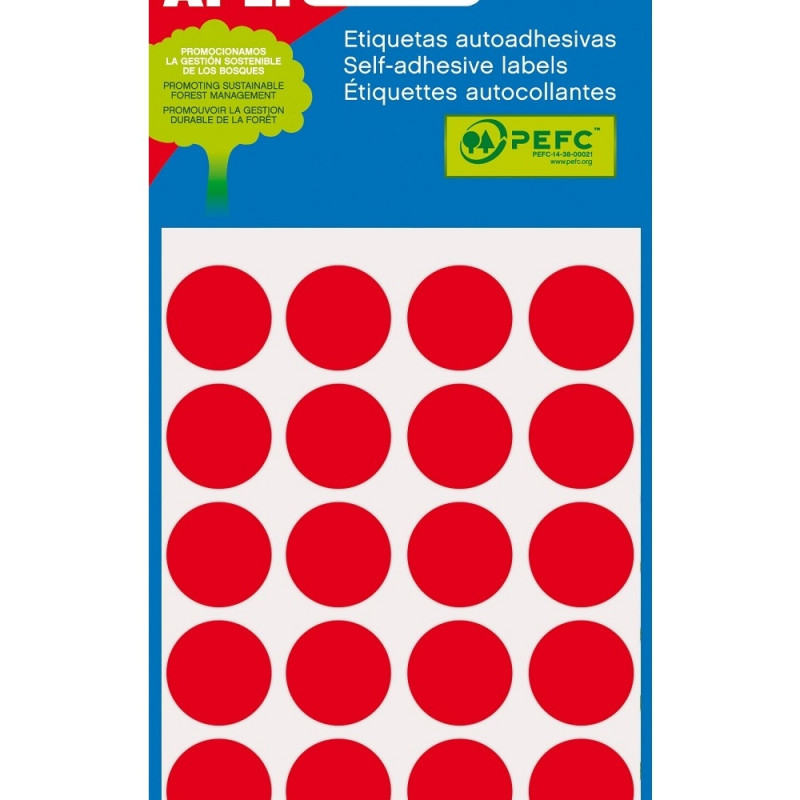 Etikett iseliimuv APLI ümar 19mm, punane, 100tk/pk, Ref.02065, markeerimispunkt