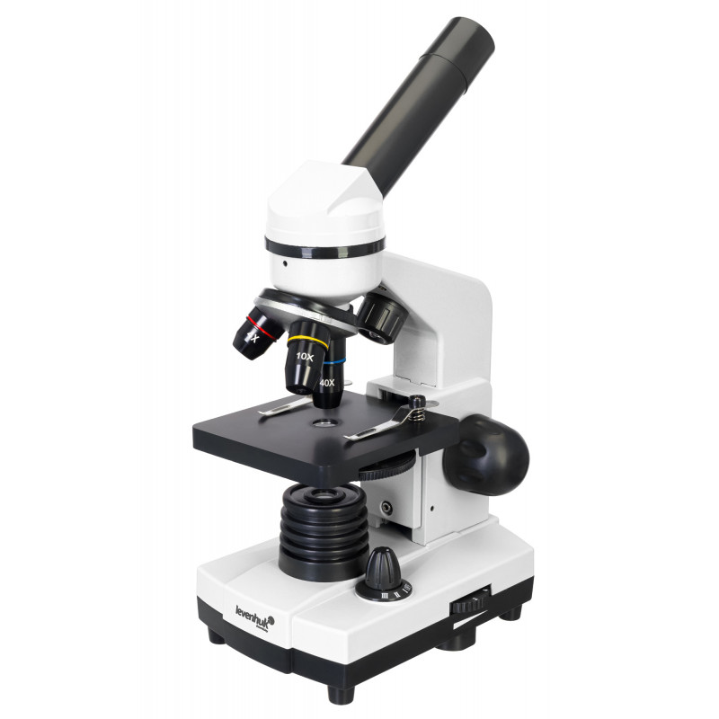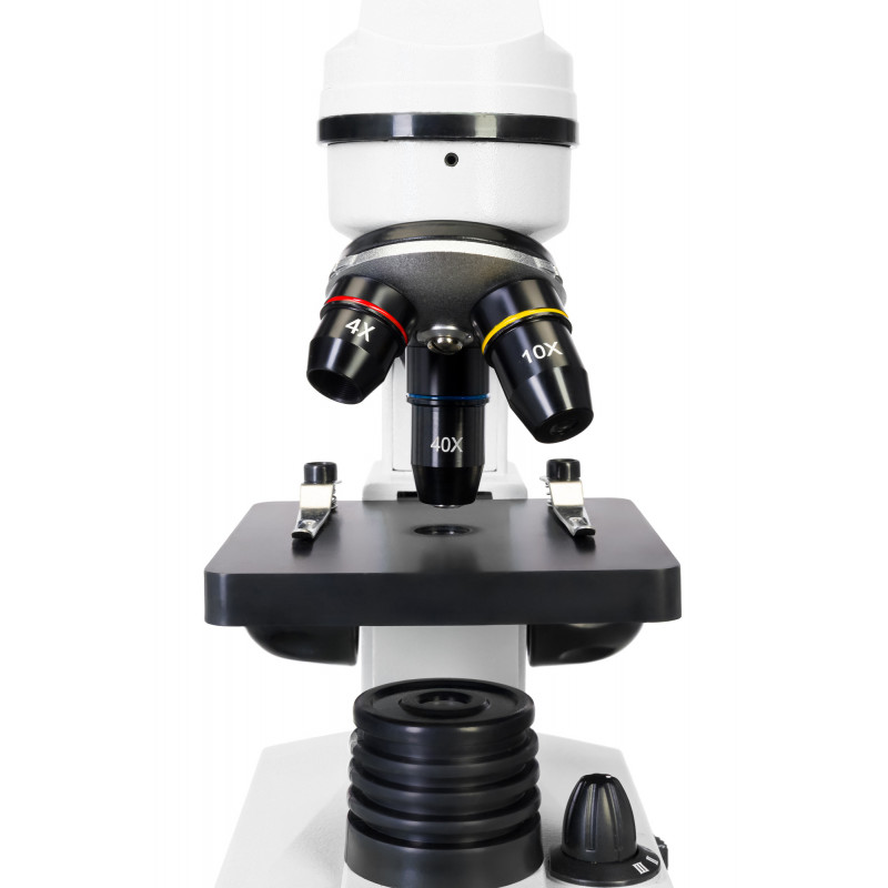 Optical elements are made of special highly transparent glass. To make images even clearer and sharper the lenses are covered with several layers of anti-reflective coating. Three objectives supplied with this model provide for wide magnification range of 40-400x. All you need to do to change the magnification is turn the revolving nosepiece.