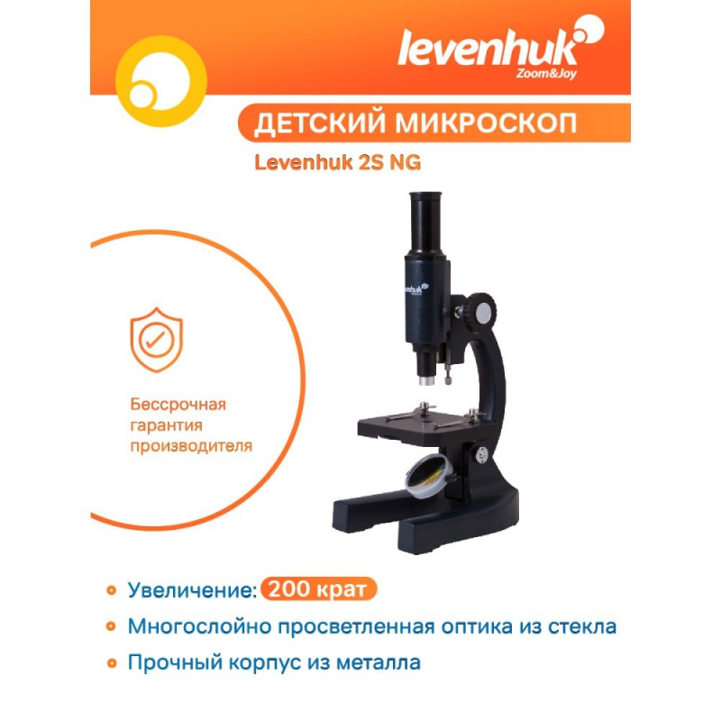 Levenhuk 2S NG Microscope is a great value, with its basic functions and high-quality Levenhuk optics. This model is a great choice for those who are just beginning to take interest in biological experiments. With its 200x magnification, it is a wonderful educational microscope for students and amateurs on their road to scientific excellence.