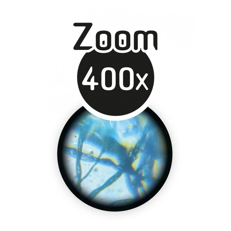 Observe the microscopic world with a microscope featuring 400x magnification, ideal for beginners. 15 experiments to understand the materials around us, with equipment for preparing your own samples.