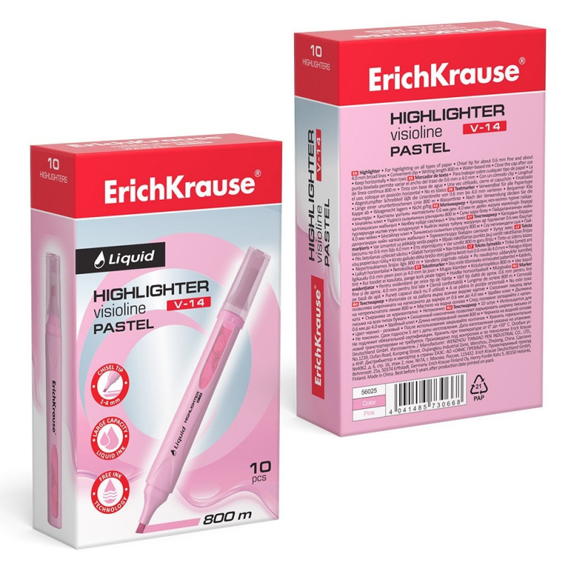 Highlighter ErichKrause® Liquid Visioline V-14 Pastel, ink color: pink (box 10 pcs.)