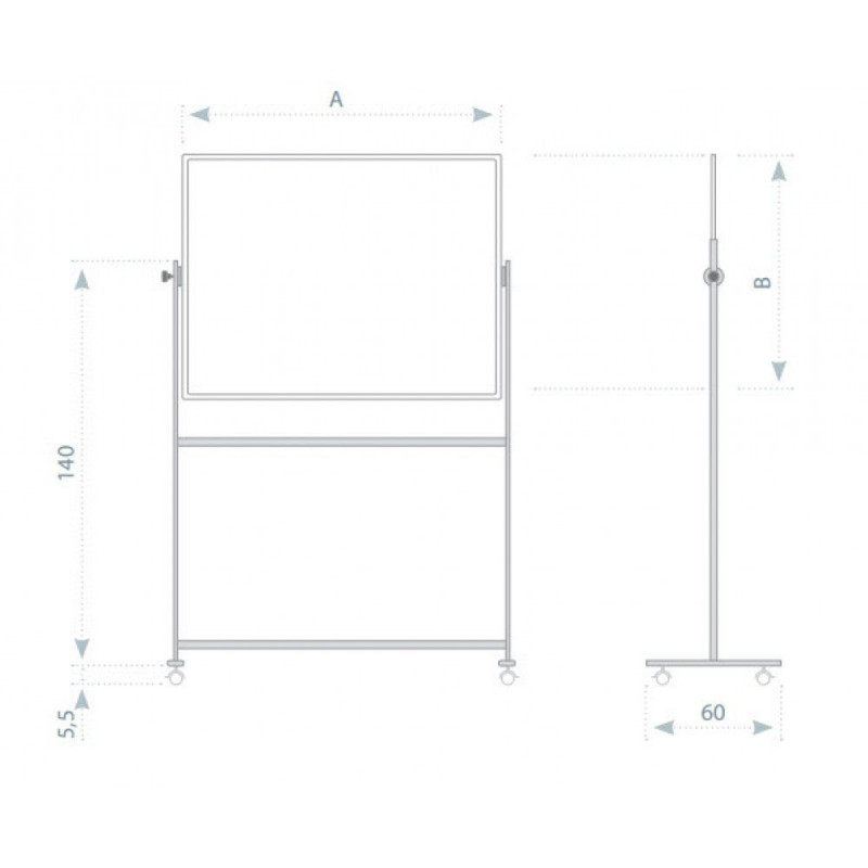 Glass board on wheels 1200x900mm rotating around the axis white 2x3