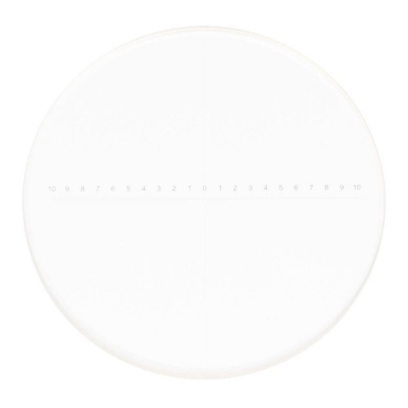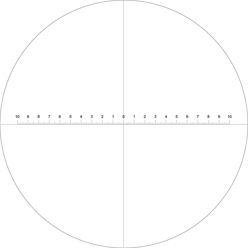 This is the Levenhuk 1 Calibration Slide. It is designed for use on stereo microscopes. It is made of optical glass and has a diameter of 24mm. The division value of the scale on it is 0.1mm. In total, the scale contains 200 divisions.