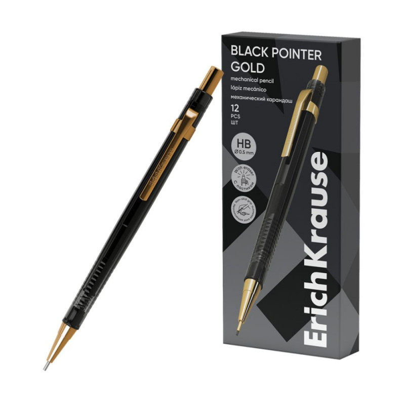 Mechanical pencil ErichKrause® Black Pointer Gold 0.5 mm, HB (box 12 pcs.)