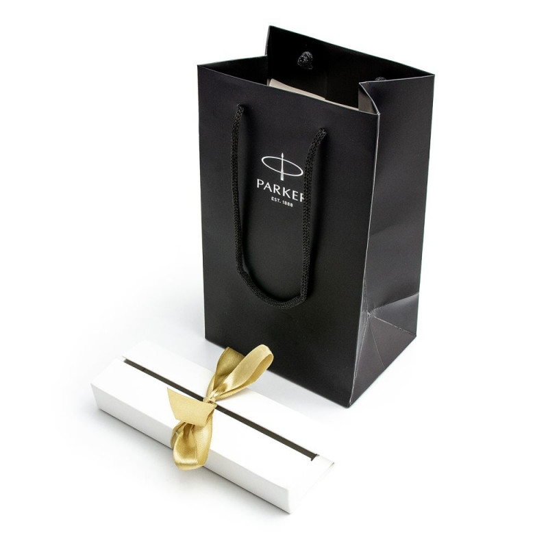 Į rinkinį įeina elegantiška balta dėžutė, perrišta auksiniu lankeliu, ir originalus "Parker" firminis maišelis. Šie elegantiški priedai, puikiai tinka kaip pakuotė ypatingai progai. Pasirinkite šį dovanų rinkinį ir nustebinkite mylimą žmogų unikalia dovana.
