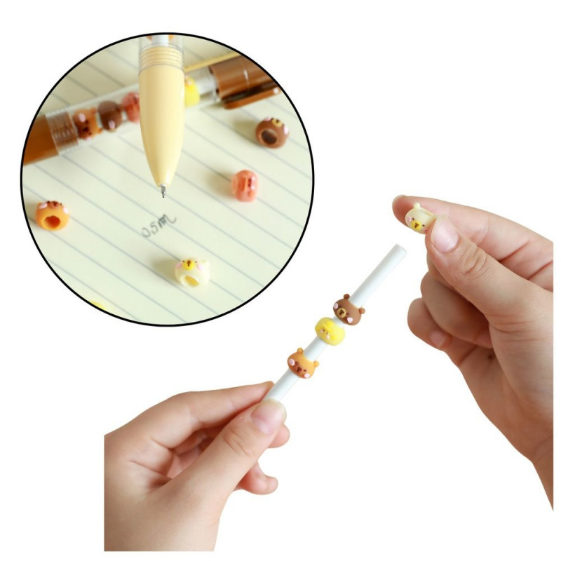 Długopis z uroczymi figurkami kapibary to wyjątkowy gadżet, który w przyjemny sposób łączy funkcję praktyczną z atrakcyjnym, zabawnym wyglądem. W przezroczystej części obudowy znajdują się kolorowe, ruchome figurki kapibar, które można dowolnie przesuwać, obracać, a nawet wyciągać i układać w innej kolejności.
