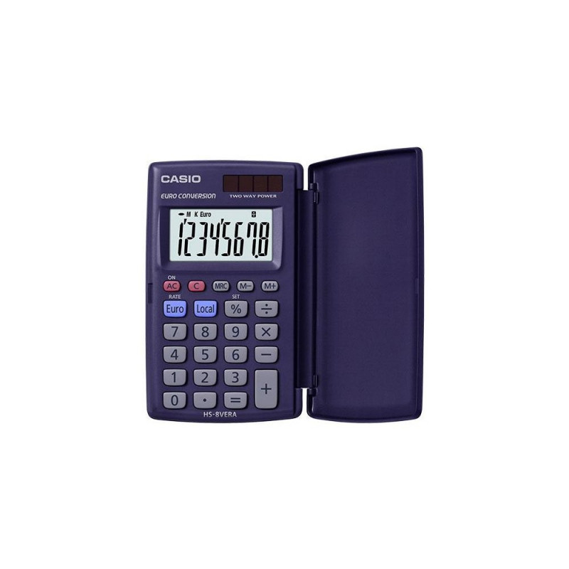 <br />Casio HS-8VERA. Form factor: Pocket, Type: Financial. Digits: 8 digits. Currency converter. Power source: Battery/Solar. Cover, Product colour: BlueWarning: Last items in stock!