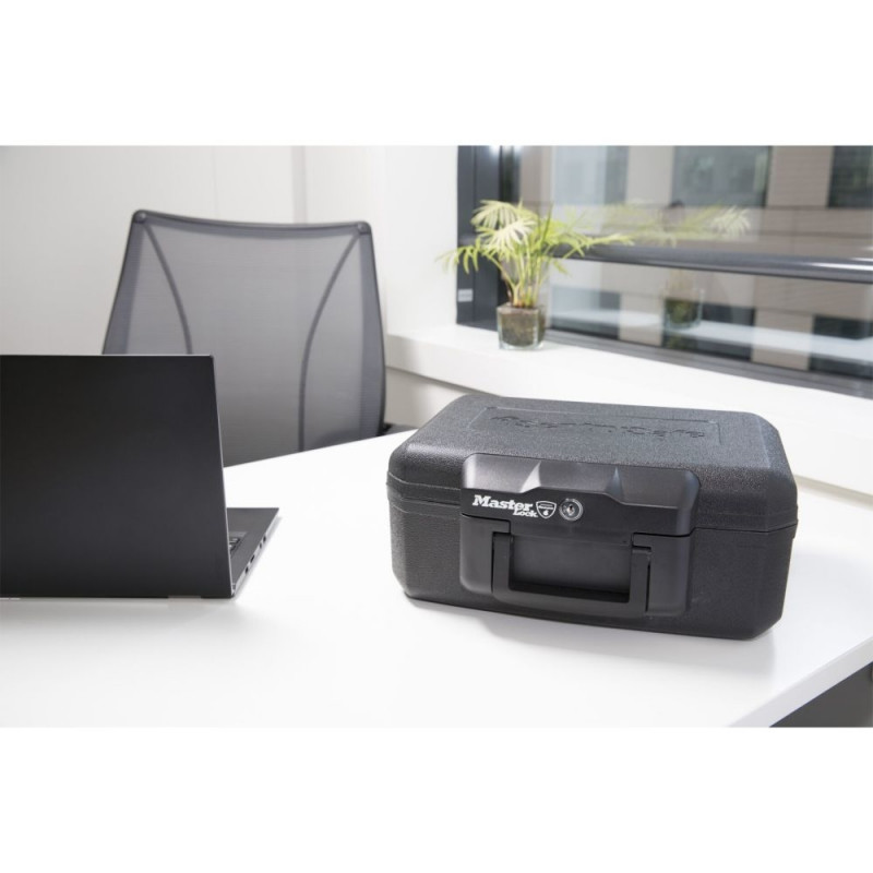 - Documents and valuables are protected from prying eyes with a key lock that also prevents the lid from opening in case of fire