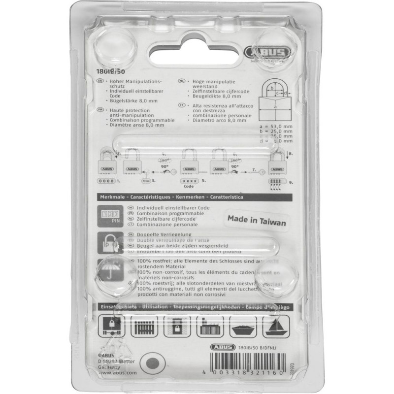 This combination lock can be used to secure items of medium value or when there is an average risk of theft. This ABUS combination padlock is suitable for strong weather conditions such as securing boats and vehicles in outdoor use or in harbour and sea areas. It is also suitable for securing gates, doors, lockers, cellar windows, tool boxes, switchgear, sheds or barriers.
