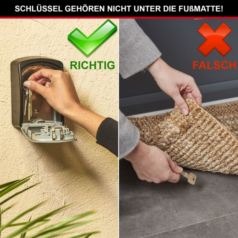 The Select Access 5403EURD key box from Master Lock has a 106 mm wide, robust metal housing and is suitable for storing multiple building or car keys and access cards. No more hiding your keys under the doormat or flowerpot: Select Access is the perfect solution for giving others access to your keys. For permanent wall mounting. Keyless convenience and more security thanks to individually adjustable, 4-digit combination. A door flap protects the combination from weather and dirt.