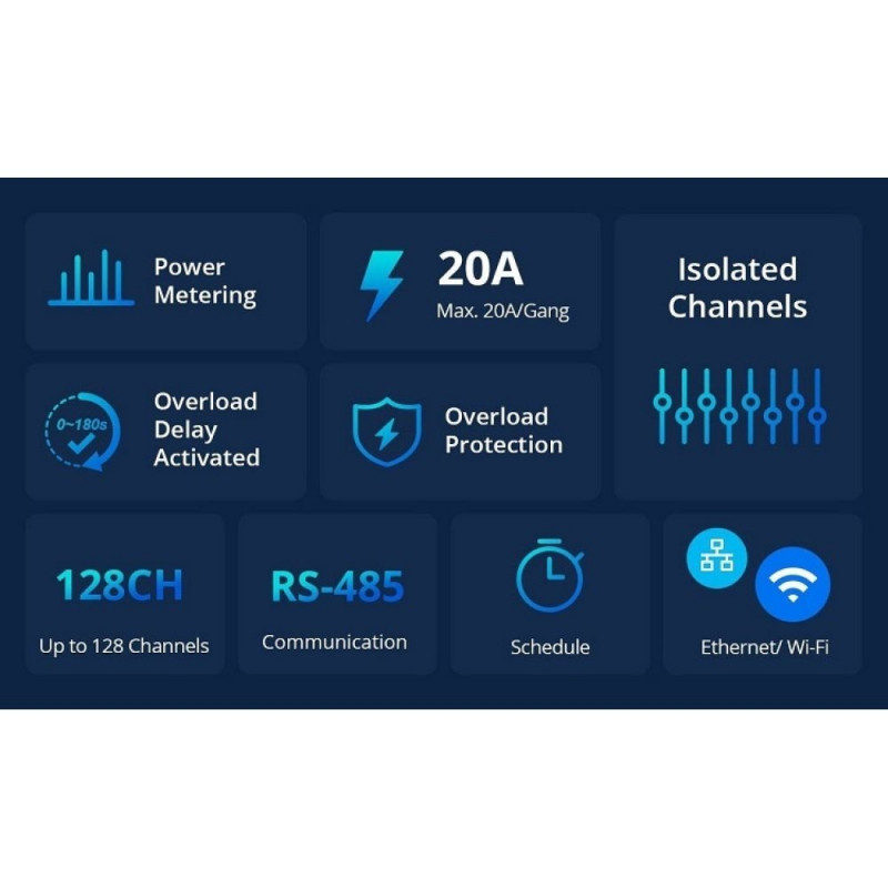 - It supports up to 128 channels (up to 32 SPM-4Relay modules), a maximum current of 20A per channel, allows monitoring of 180 days of electricity consumption data, and management of each channel individually.