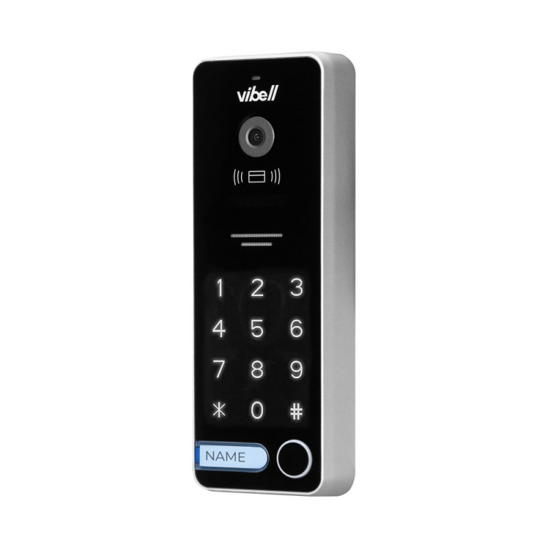 Wideo kaseta do rozbudowy zestawów domofonowych z serii VIBELL wyposażona została w kolorową kamerę z szerokokątnym obiektywem. Dodatkowe oświetlenie jasnymi diodami LED umożliwia widzenie w nocy. Wideo kaseta posiada szyfrator oraz czytnik RFID umożliwiający dostęp uprawnionych użytkowników. Zbudowana jest z bardzo wytrzymałych materiałów, dzięki czemu pozostaje długo odporna na działania warunków atmosferycznych. Po połączeniu z dowolnym monitorem z serii VIBELL możliwe jest prowadzenie rozmowy pomiędzy kamerą, a panelem wewnętrznym, aktywowanie funkcji sterowania bramą oraz otwieranie elektrozaczepu. Wideo kaseta ze względu na dodatkową funkcjonalność wymaga dodatkowego zasilania (w zestawie). Występuje w kolorze czarnym.
