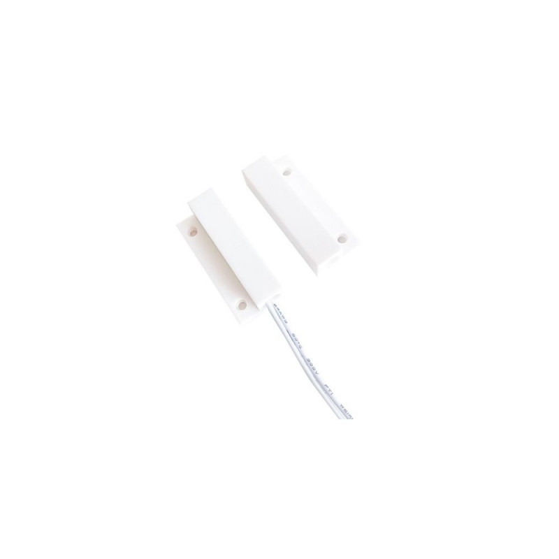Technical specifications: Operation gap: 17-25 mm. Contact type: NC (Normally Closed). Material: ABS, metal. Installation: surface. Cable length: 270 mm. Magnet dimensions: 34 x 14 x 6.5 mm. Color: white.