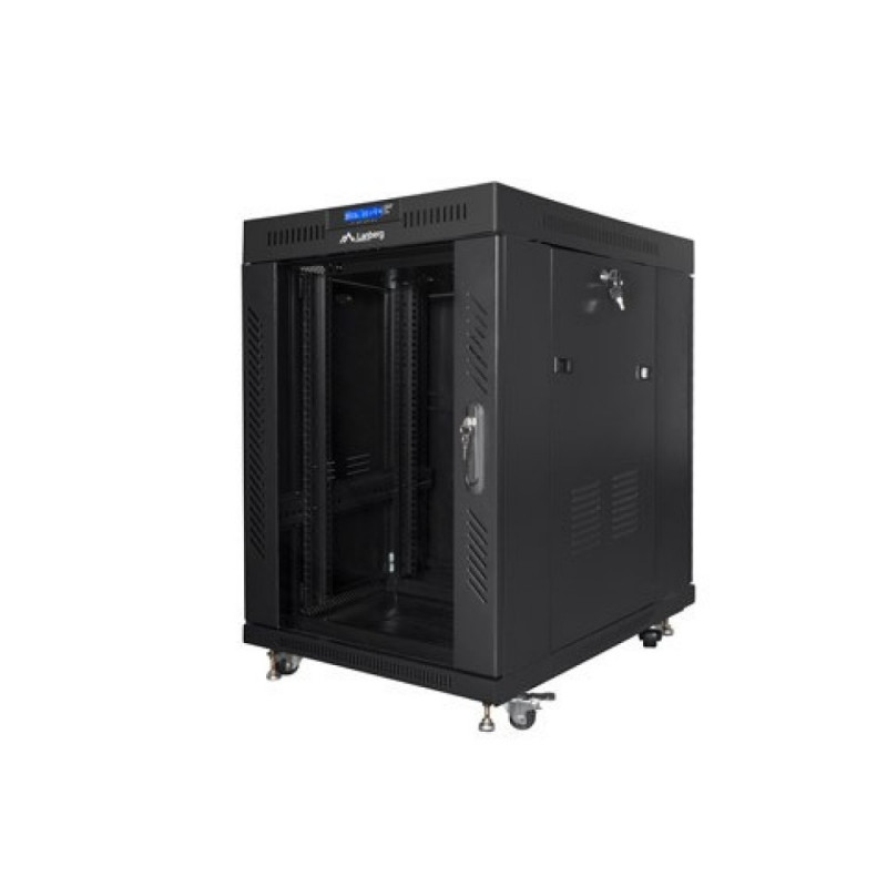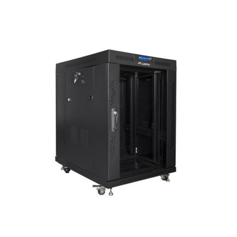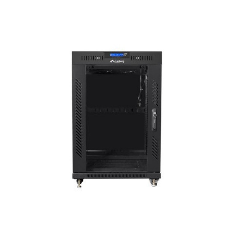 Installation cabinet rack 19 15U 600x800 black, glass door lcd (flat pack)