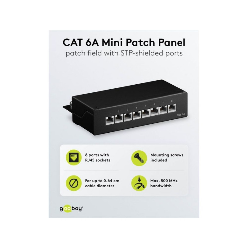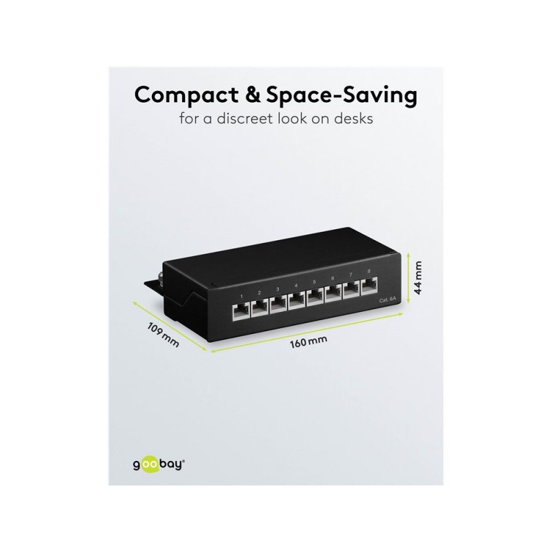 Goobay CAT 6a Mini Desktop Patch Panel, 8 Port black