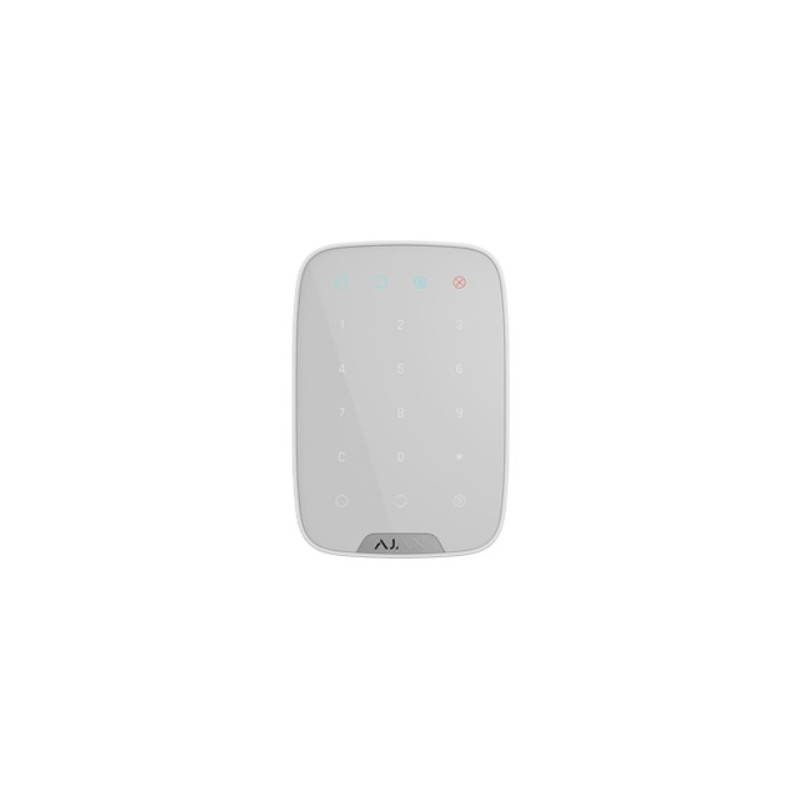 Wireless touch keyboard. Ajax KeyPad helps to manage the Ajax security system. Arm the system with a passcode or with the press of a button. Use a duress code to send a silent alarm to a central monitoring station.Maximum performanceWorks up to 1,700 meters from Ajax Hub in open space or across several floors of a business center. Allows for partial arming of the system. Indication of protection status.Protection from intruders and failureProtected with rolling code encryption and authentication. Tampering alarm. Response from the keyboard can be checked every 12-300 seconds (adjustable). Jamming detection, frequency-hopping.Effortless operationThrough two-way communication with the hub, the keyboard confirms the delivery of any command. Has a battery life of up to 2 years when pinging once per minute. Arm/disarm with a passcode. One button arming.Simple professional-level installationNo need to disassemble the body when installing using SmartBracket mounts. The signal strength can be tested remotely. Connects to Ajax Hub with a single click.Technical specificationDevice type: WirelessUse: IndoorCompatibility: Works only with Ajax HubKeyboard type: SensorNumber of buttons: 15Duress code: AvailableProtection against password guessing: AvailableTampering alarm: AvailableArm/disarm status indication: AvailableRadio signal power: 20 mWCommunication protocol: Jeweller (868.0-868.6 MHz)Maximum distance between keyboard and central unit: Up to 1,700 m (5,577 ft) (in open area)Power supply: 4 AAA batteriesPower supply voltage: 3VBattery life: Up to 2 yearsBattery charge indication: AvailableOperating temperature range: From 0°C (+14°F) to +50°C (+122°F)Operating humidity: Up to 80%Dimensions: 150x102.5x13.2 mmWeight: 172 gComponentsWireless touch keyboard4 AAA batteries (pre-installed)Manual