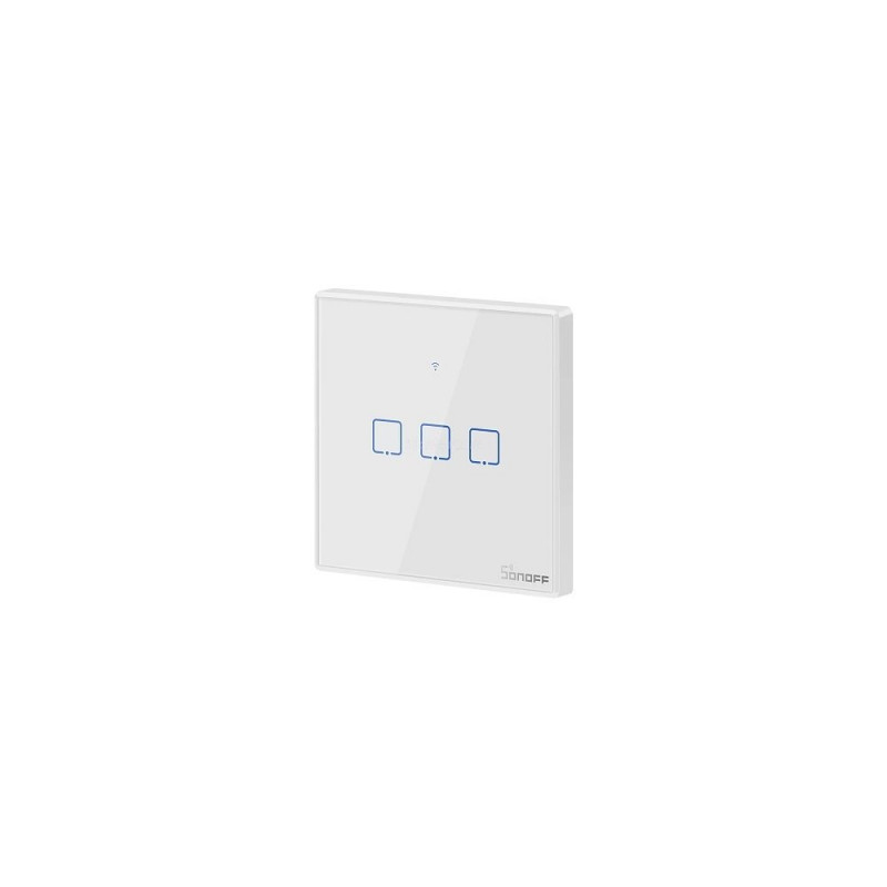 SONOFF smart home system allows you to control your electrical appliances remotely with the EWeLink app or by voice with Amazon Alexa or Google Home. It allows you to create different scenarios, group appliances by switching on/off multiple devices with a single touch, set timers and schedules, monitor the status of your devices in real time, and share their control. Link your eWeLink with IFTTT application and extend your scene capabilities. Thanks to configurable local LAN support Sonoff smart home system can work without a cloud server. Features: Smart wall touch switch 3-gang is easy to install in place of a regular wall switch and doesn't require a frame. Turnon/ off the lights in your home however you want: by touch, by voice with Amazon Alexa or Google Assistant, by smartphone via the eWeLink app or by remote control. The signal is transmitted via Wi-Fi or RF at 433MHz. The switch supports all the functions of the Sonoff smart home system: timer, smart scene, device grouping, sync status, share, sunrise/sunset routine, camera feature, etc. The LED indicator makes the switch easier to be detected, helping turn on lights in dark environment. The stylish, modern design is compatible with other Sonoff wall switches and blends seamlessly into your home interior. This switch will complement your smart living scenes.