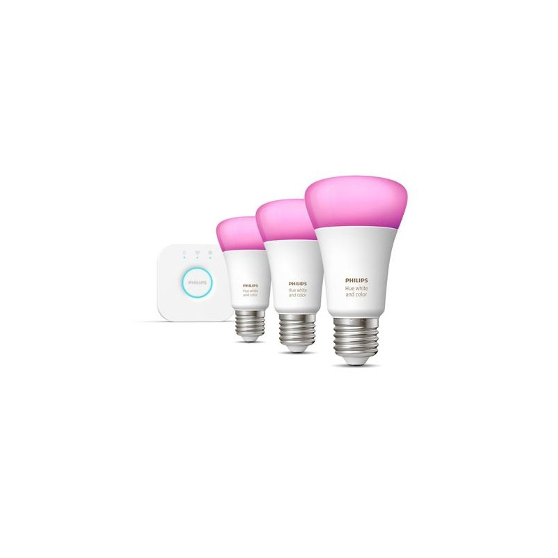 <br />Philips Hue White and colour ambience Starter kit E27. Type: Smart lighting kit, Interface: Bluetooth/Zigbee, Product colour: White. Mobile operating systems supported: iOS 11.0, iOS 11.4, iOS 12, iOS 13. Energy efficiency class: F, PowerProduct has been archived