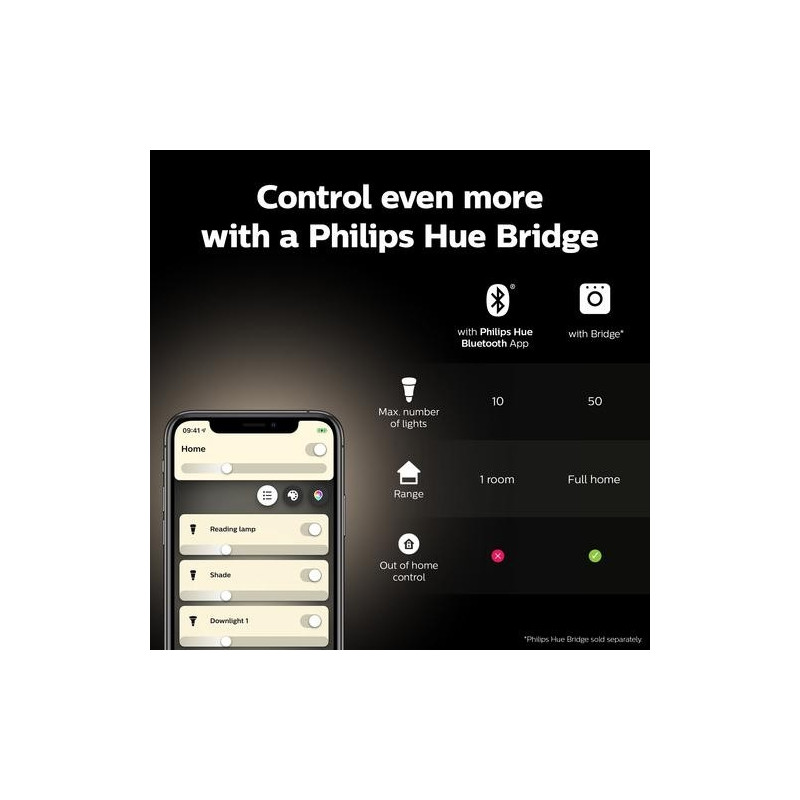 <br />Philips Hue White GU10 – smart spotlight. Type: Smart bulb, Interface: Bluetooth/Zigbee, Product colour: White. Energy efficiency class: F, Power consumption (standby): 0.5 W, Power consumption (max): 5.2 W. Width: 50 mm, Depth: 50 mm, HeProduct has been archived