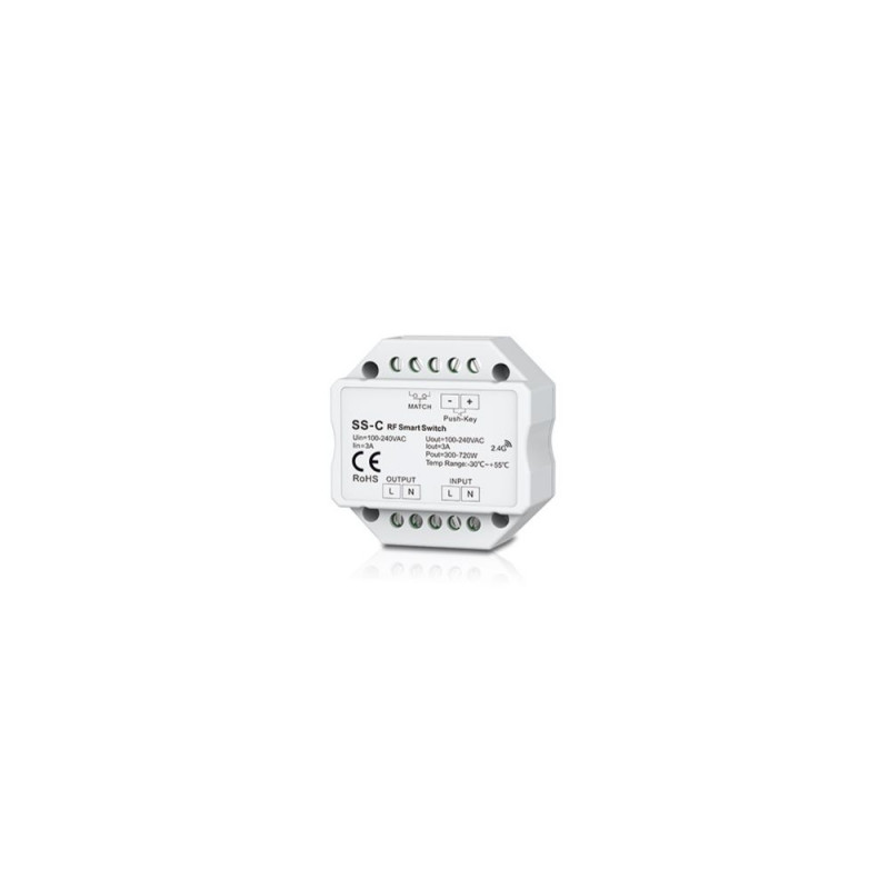 Smart RF switch, without dimming function, 100-240V AC 1x 6A, for single color LED strips, incandescent and halogen lamps, 1 channel, Push-Key. Features: Supports lighting systems: single color. Allows you to turn on/off the lighting. CompatibleWarning: Last items in stock!