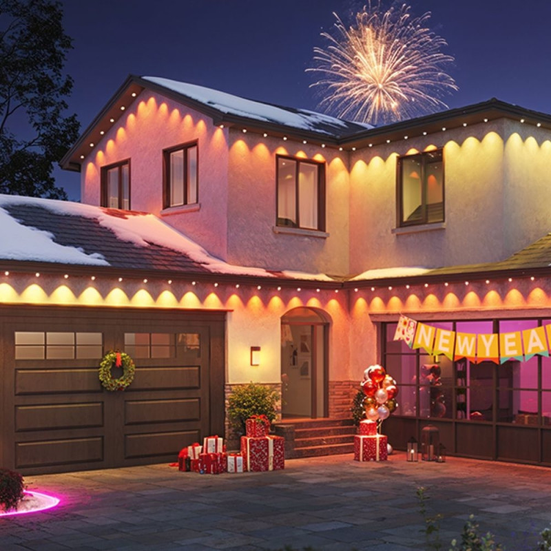 Govee Permanent Outdoor Lights 2 is perfect for multiple occasions, from cozy Valentine's Day evenings, vibrant Christmas celebrations to spooky Halloween nights. With 100 scene modes and 16 million colors, these lights build a captivating and unique outdoor for you. It also shines your home with its powerful 40 lumen white light.