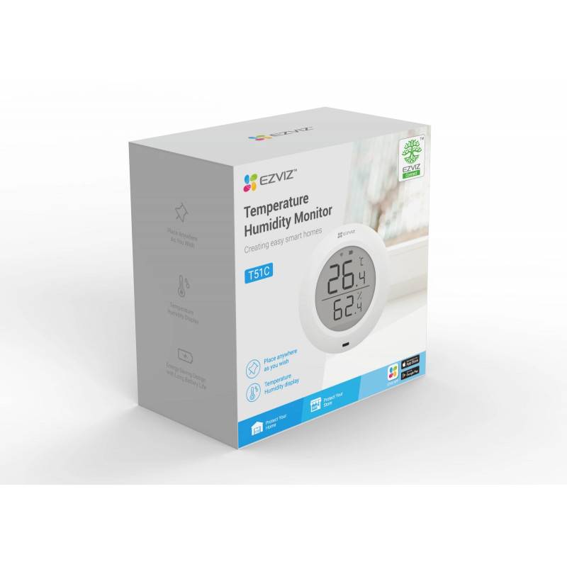 As a petite gadget with high-precision sensor chip, the T51C detects and visualizes the room temperature and humidity on its big screen. After connecting it to the EZVIZ Home Gateway, you can also check real-time data or review historical trends on the EZVIZ App before you arrive home.