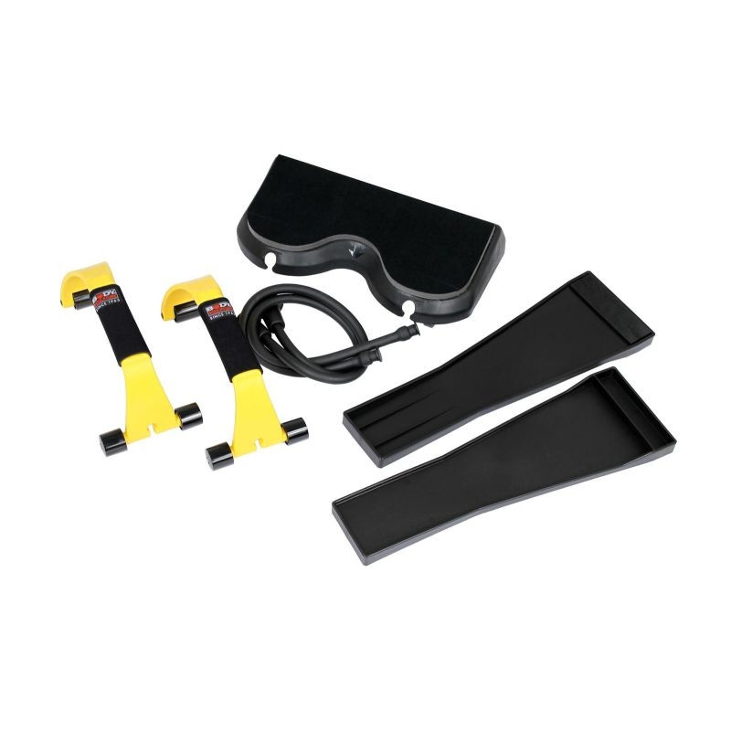 The multi-trainer helps you perform classic push-ups, as well as toning exercises, inner and outer thigh exercises, and full-body stretches. Systematic training helps shape the abdominal and arm muscles.