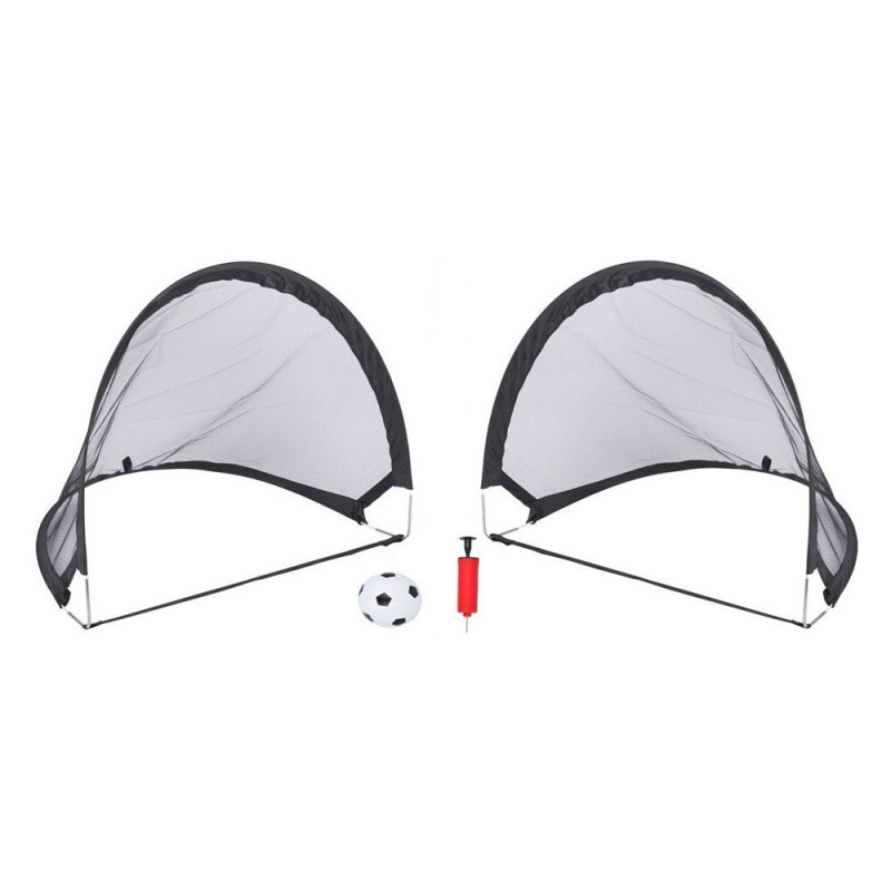 Zestaw samorozkładających się bramek pozwoli stworzyć własne boisko do gry w zaciszu domowego ogródka. Szybkie rozkładanie i składanie. Do zestawu dołączono piłkę oraz pompkę, dzięki czemu rozgrywkę można rozpocząć niemal od razu po rozpakowaniu. Pokrowiec do przechowywanie i transportu w zestawie.