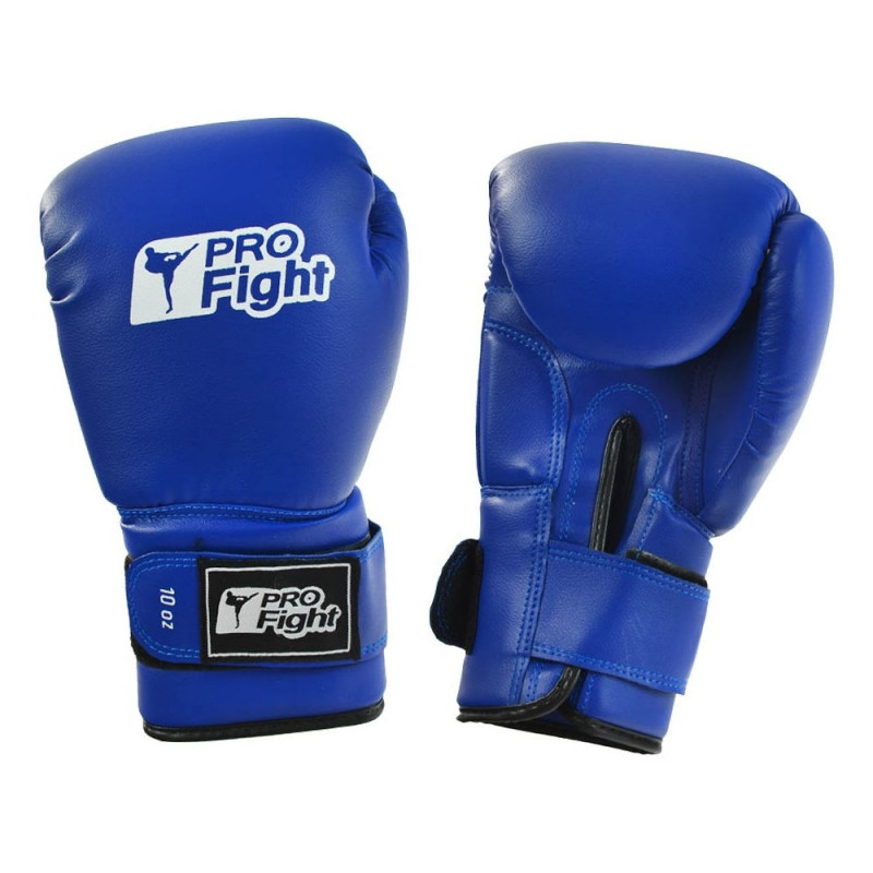 Niebieskie rękawice bokserskie Profight wykonane z wysokiej jakości materiału PVC, wypełnione jednowarstwową pianką. Model uszyty został trwałą, nylonową nicią. Poza tym posiada wzmocnione szycie. Łączony kciuk. Sztywne zapięcie. Otwory wentylacyjne. Część przednia rękawicy jest dodatkowo usztywniana. Atłasowa podszewka gwarantuje komfort użytkowania. Całość została zapakowana w praktyczny pokrowiec z zapięciem na rzep i uchwytem.