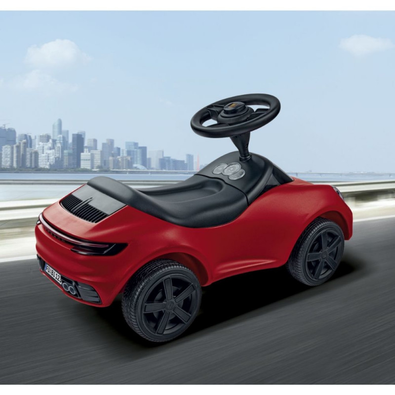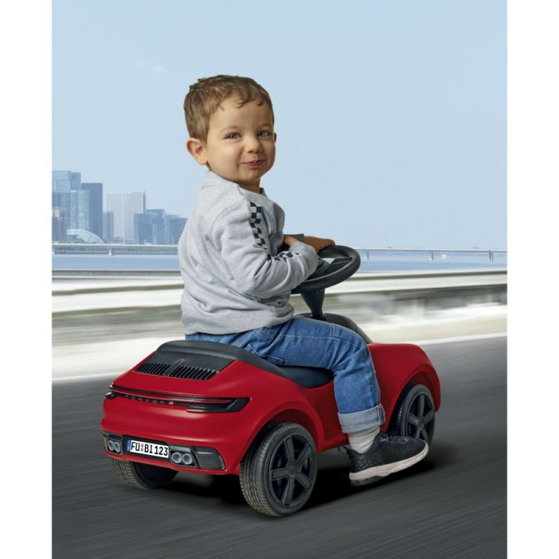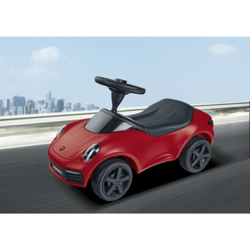 With its fascinating design combined with high driving comfort and safety, the Baby Porsche 911 from BIG enchants both young and old fans of the traditional brand and makes their racing hearts beat faster. The body of the high-quality children's car is extra robust and resistant thanks to the special manufacturing process. Special features such as a double-shell safety steering wheel with mechanical horn and original Porsche Crest, a comfortable wipe-clean seat made of a textile plastic cover and four wide whisper wheels with rims in Porsche design are a must for this little luxury sports car.