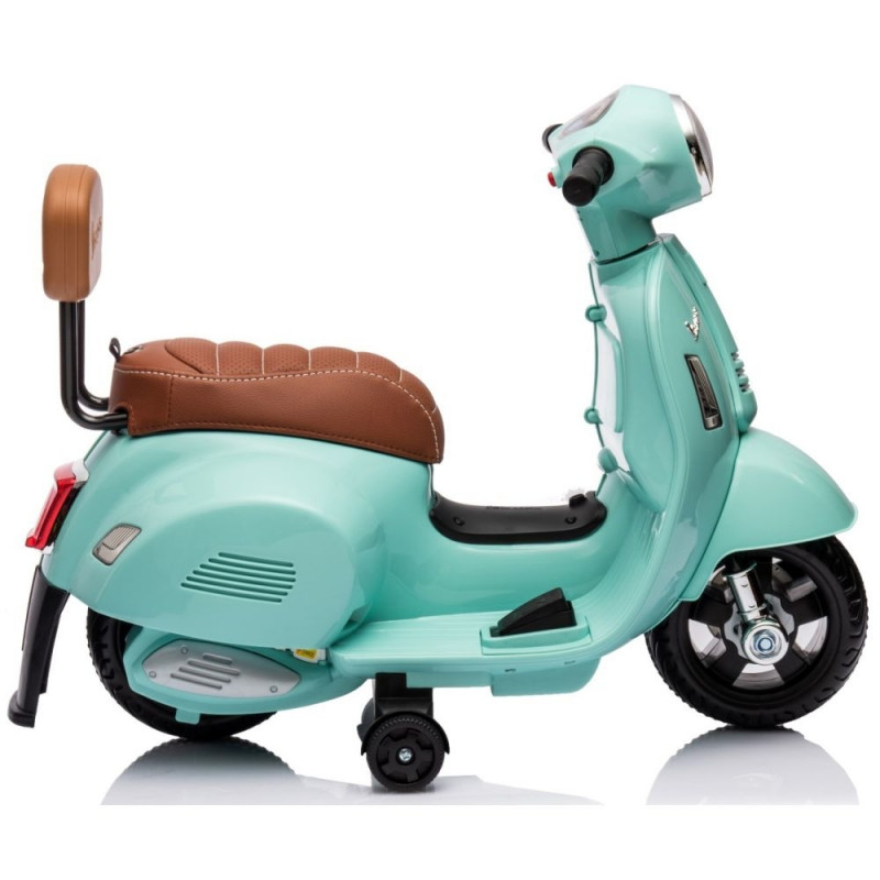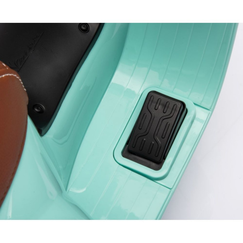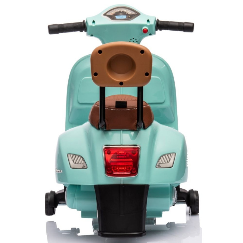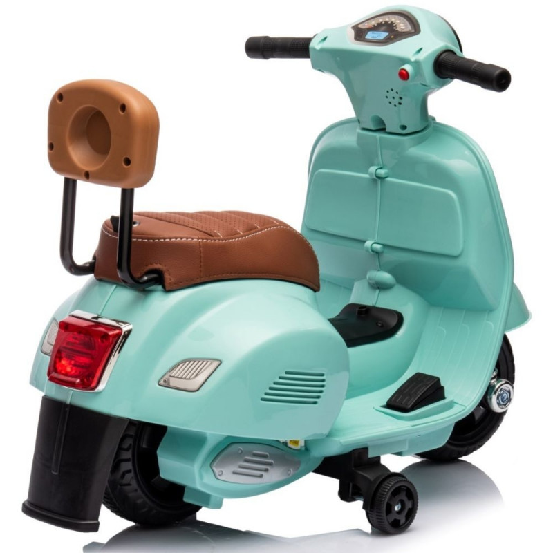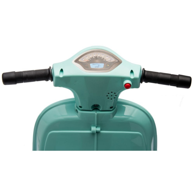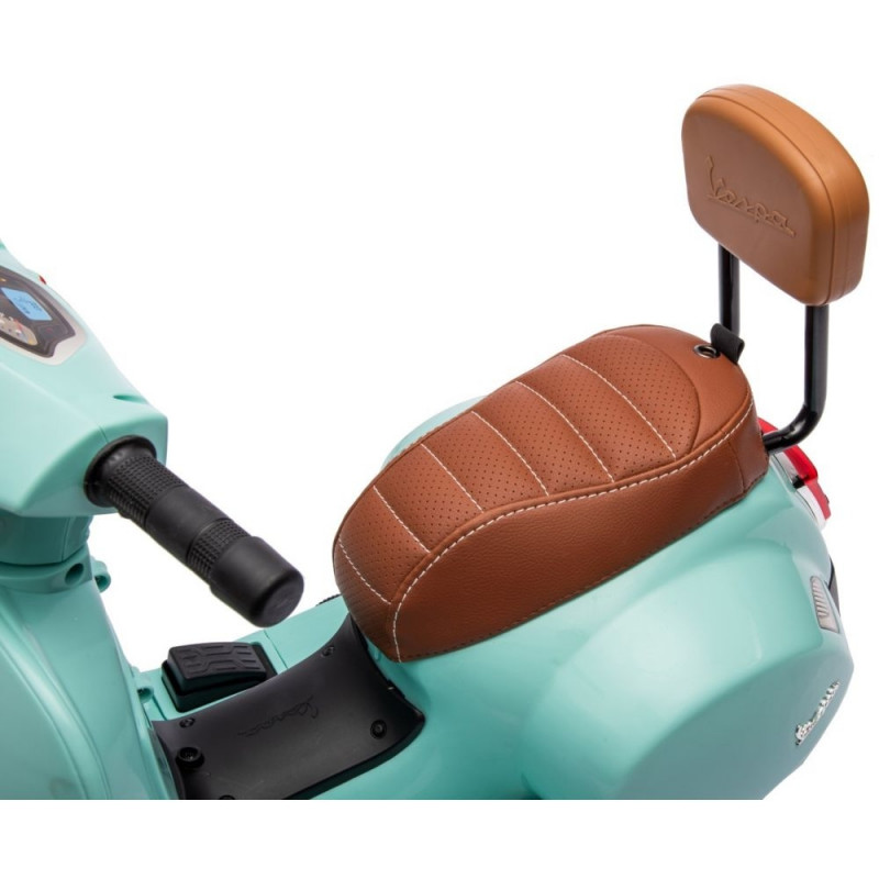 Jeździk akumulatorowy Scooter Vespa z siedzeniem z ekoskóry z przeszyciem i oparciem - turkusowy